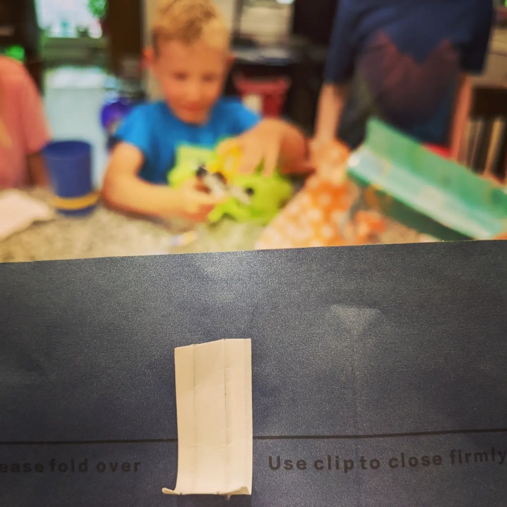 I laughed when I saw what my in-laws had grabbed as an impromptu gift bag for our birthdays-in-May party. My mother-in-law, who couldn’t come due to a recent family emergency, had plenty of these bags for her daughter and grandkids to use because she’s a flight attendant. Yep, it’s a barf bag. Happy Barfday.
